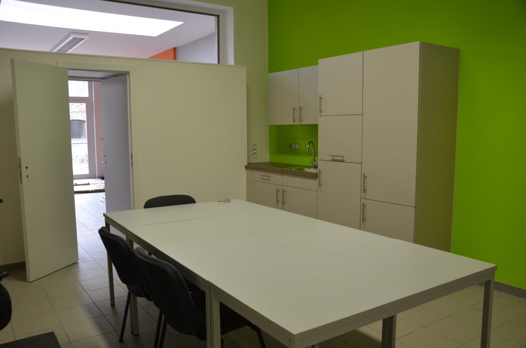 Salle de réunion/cuisine et salle d’attente commune à tous les cabinets.